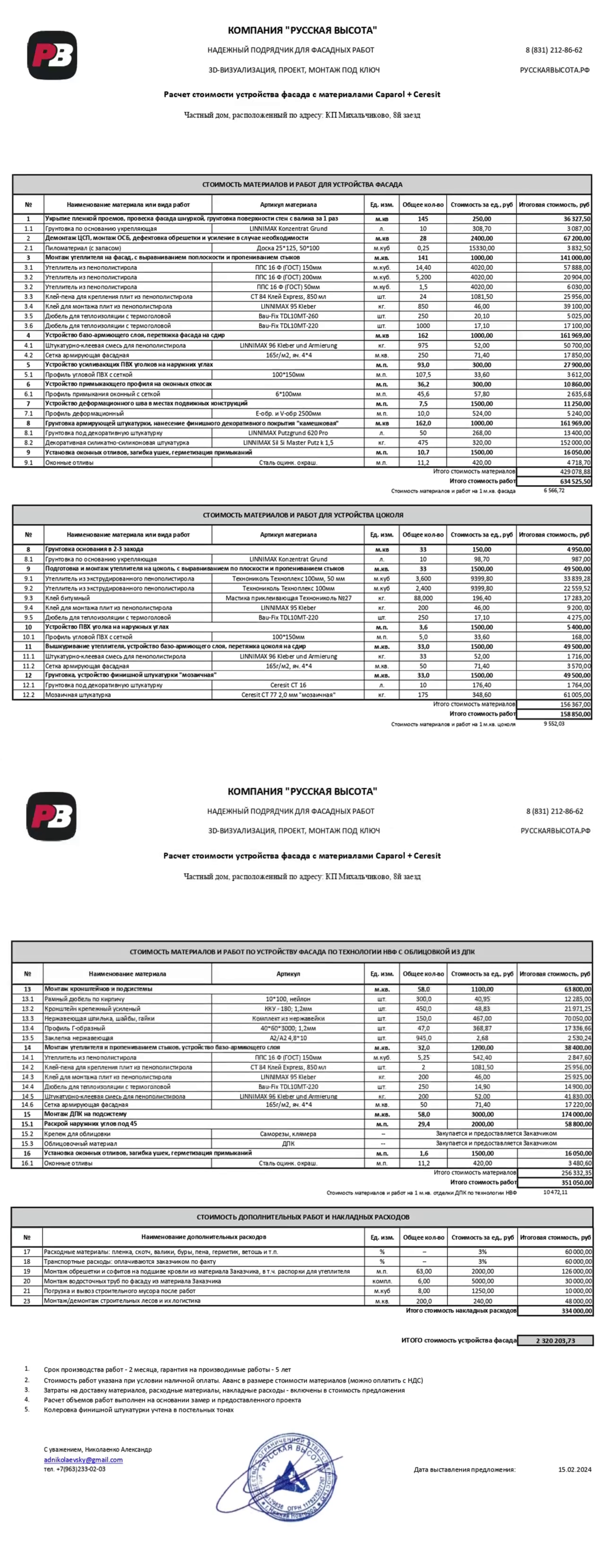 Комбинированный фасад по технологиям СФТК и НФС для проекта Смарт-Строй с финишными материалами – штукатурка короед, керамогранит, композит, планкен лиственница. Было выполнено утепление пенопластом и минватой